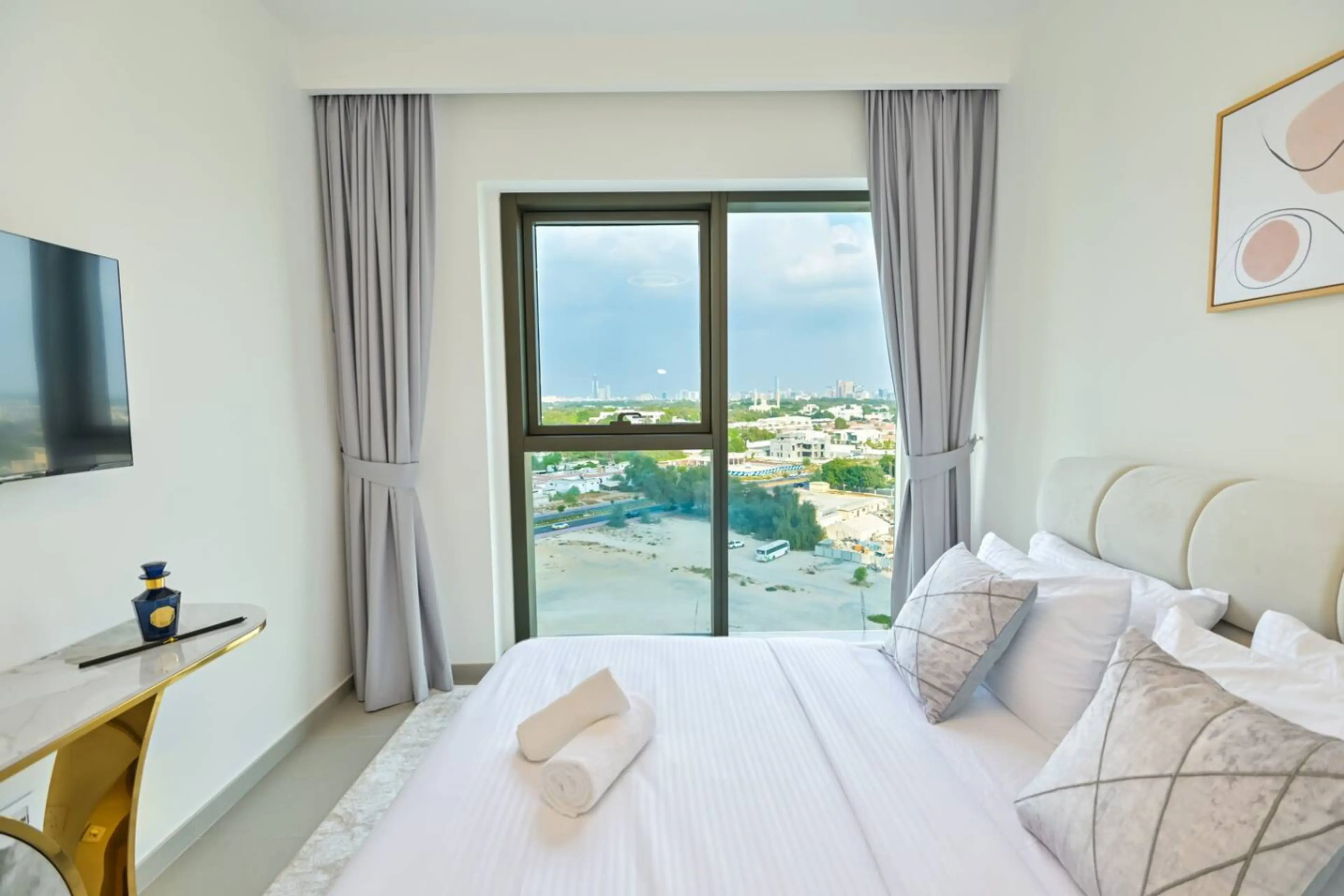 The apartment features spacious and elegant bedrooms, fully equipped kitchen, and a stylish living area with stunning views. You'll have access to high-speed internet and flat-screen TVs in every room. The apartment is located in Downtown Views 2, Tower 3. It is across Dubai Mall. And it is just st...