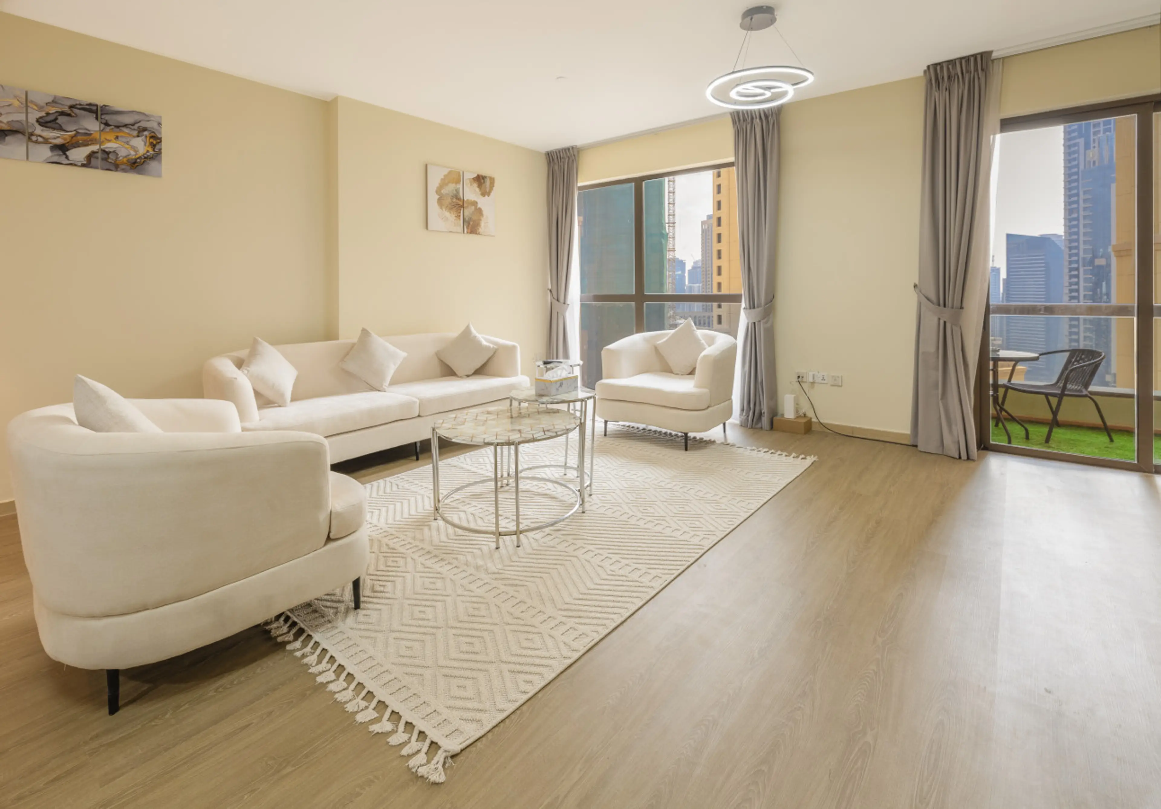 Positive: These are very spacious and comfortable apartments. If you look out the window to the right, you can see the Ferris wheel on Bluewaters Island, and to the left, you get a beautiful view of Dubai Marina. The apartment has two TVs, one in the living room and another in the bedroom, which is very convenient.