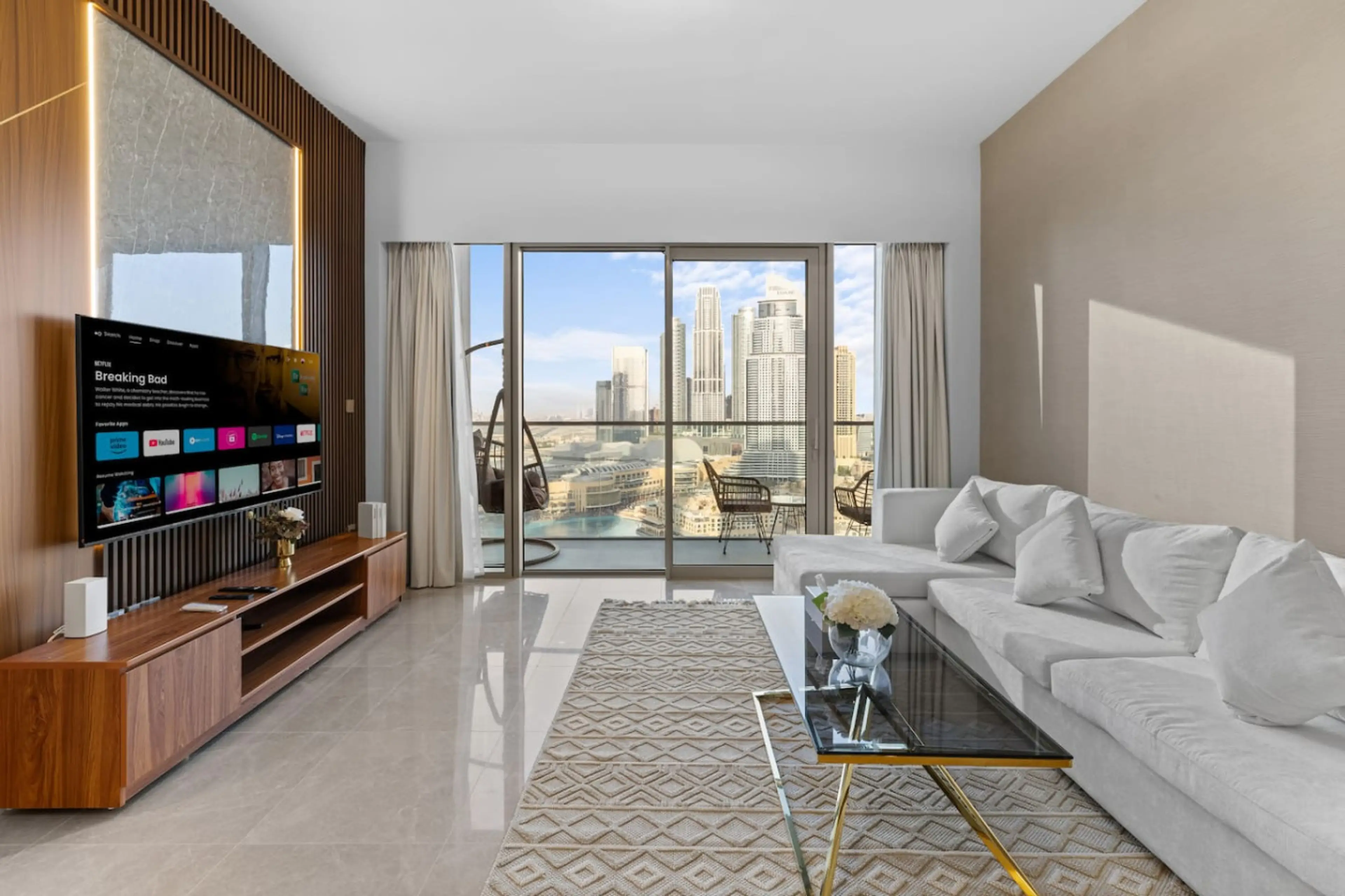 Welcome to your stylish home away from home in the heart of downtown! This new 2-bedroom apartment offers a perfect blend of comfort and modern luxury. The space features sleek furnishings, a fully equipped kitchen, and floor-to-ceiling windows with stunning Burj Khalifa views. Enjoy high-speed Wi-...